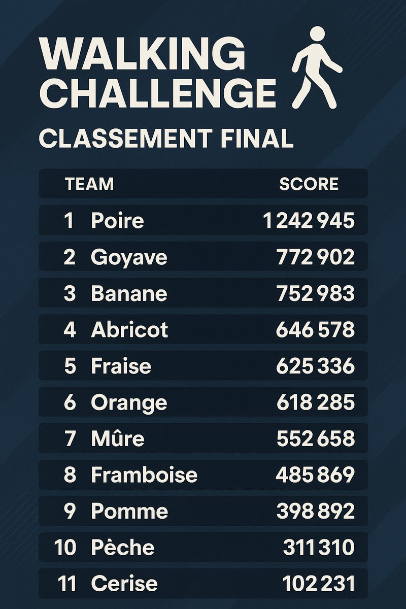DotWorld : Impossible de terminer sans parler du Walking challenge 2025 que tu as remporté haut la main avec plus de 600 000 pas en un mois !